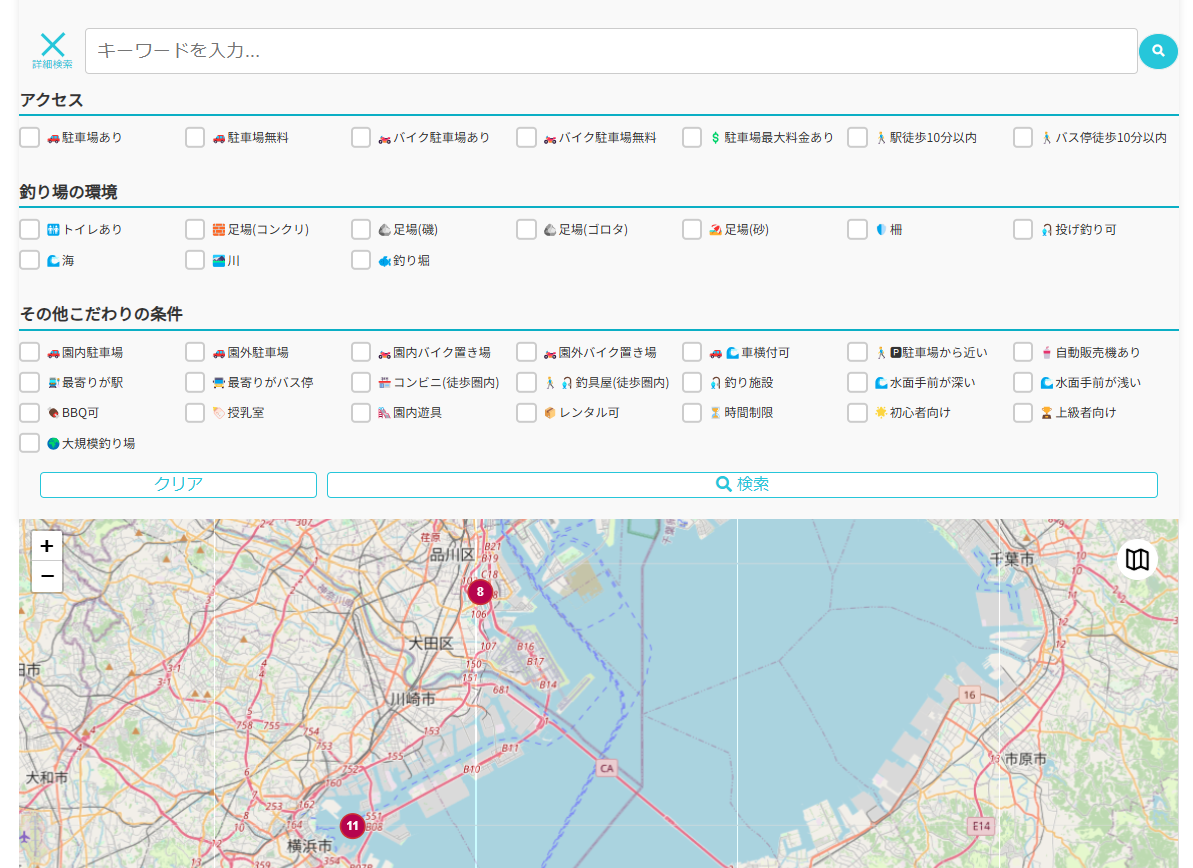 また、柵のある釣り場は転落リスクが低く、比較的安全です。当サイト(marescope、マレスコ)の検索機能では条件項目に「柵」があります。安全で楽しい釣りのためにご活用ください。