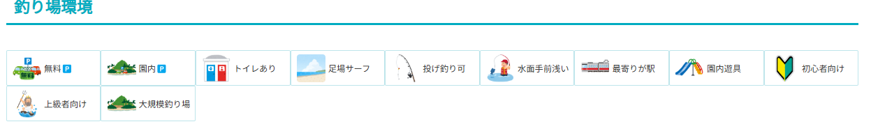 当サイトの釣り場検索には「整地・サーフ・磯・ゴロタ」といった条件機能のほか、記事内にて端的にどういう環境かを示す項目があります。