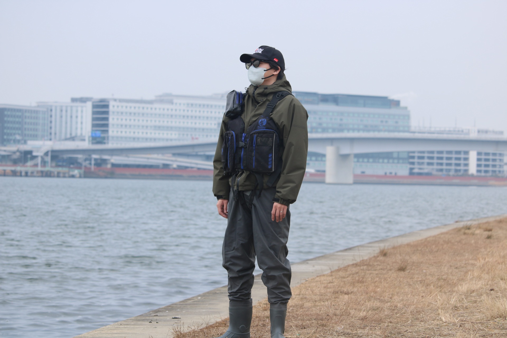 - 濡れる可能性の少ないゴロタの釣りでは、このようなライフベストではなくてもOK。